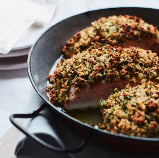 BAKED SALMON WITH A PISTACHIO, HONEY AND HERB CRUST