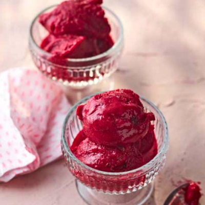 Blackberry sorbet is always my flavour of choice and brings back memories of foraging with friends when I was a little boy. We’d pick and eat our way through the bushes, and our purple-stained mouths and fingers were always a huge source of amusement – until my mum scrubbed me clean later that evening, practically scraping off the top layer of my skin in the process! This sorbet is perfect served with a chilled bottle of prosecco.