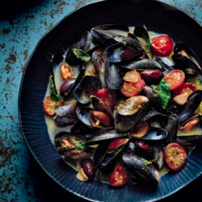 Mussels with pesto – it’s not a combination that you see every day, but in Genoa it’s really popular. To be honest, I wasn’t sure about the idea before I tried it, but I soon changed my mind. The aromatic flavour of the basil and the saltiness of the mussels work really well together, the pine nuts add texture, and the Leccino olives add a subtle piquancy – simply fantastico! Make sure you buy the best-quality olives and pesto, as they’re vital for the success of this dish. Serve with warm crusty bread.