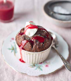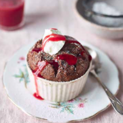 SUPER-EASY CHOCOLATE SOUFFLÉS WITH RASPBERRY SAUCE