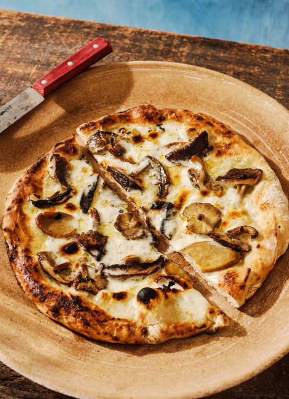PIZZA BIANCA CON TALEGGIO, FUNGHI DI BOSCO E OLIO AL TARTUFO